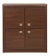 Skříňka se čtyřmi čtvercovými dvířky, zaoblenými lištami a zdobenými obdélníkovými úchyty. Toto spojení přinese do vašich domácností vznešenost a eleganci. Skříňka má uvnitř poličky.