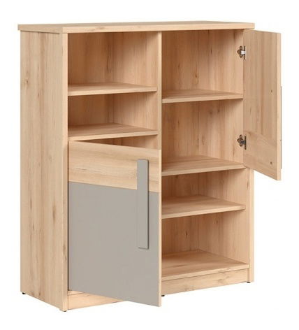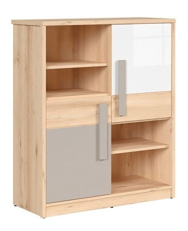 ZobrazitSkříňka Namek REG2D o výšce 112 cm a hloubce 29 cm je moderním regálem, který obsahuje několik otevřených polic pro dekorativní předměty a dvě dvířka v odlišném barevném provedení. Tento regál obsahuje také police, které jsou vhodné pro uskladnění knih a poskytují snadný přístup k nim. Kolekce Namek je ideální volbou pro vytvoření pohodlí v každém dětském pokoji. Nábytek v této kolekci má jednoduchou formu a tlumené barevné odstíny, které tvoří ideální místo pro běžné aktivity dětí. Díky regálu Namek budou vaše děti mít vše potřebné na dosah a přitom bude pokoj vypadat moderní a elegantně.