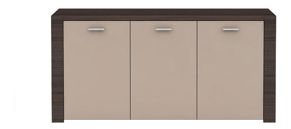 Třídveřová skříňka se šesti poličkami uvnitř.