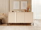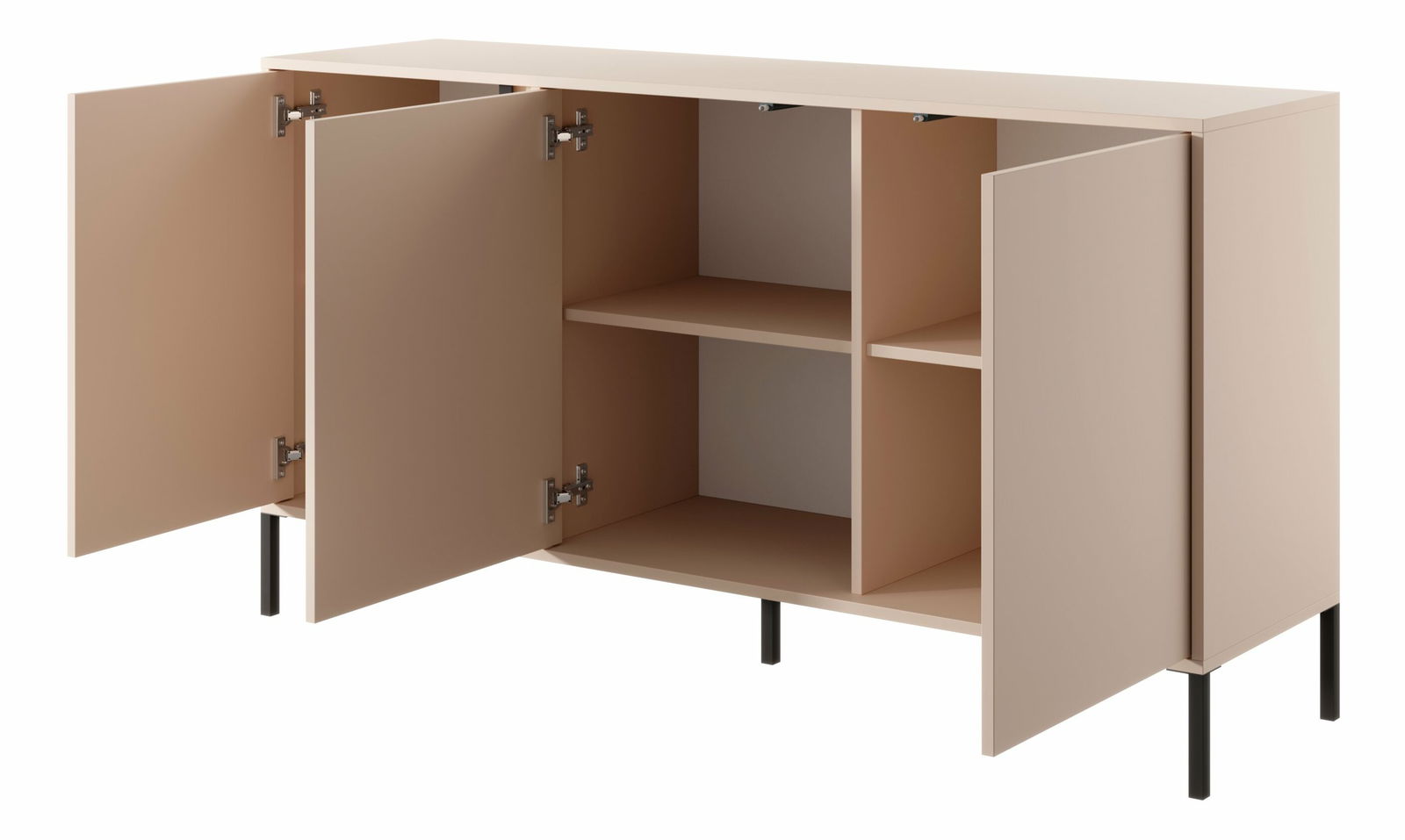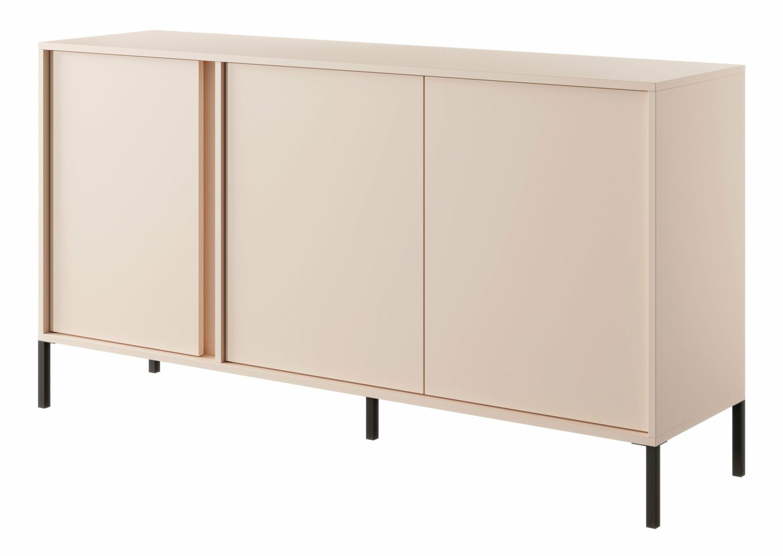 Kolekce DANTON se vyznačuje lehkostí a elegancí. Je to díky jejímu geometrickému tvaru a zajímavému vertikálnímu LED podsvícení ve výklencích, které dokonale ladí s jemnou béžovou barvou a prolamovanými černými kovovými nohami. To vytváří nekonečné možnosti designu. Tato kombinace rozzáří každý obývací pokoj a opticky jej zvětší. Nábytek má systém otevírání dvířek push-to-open.