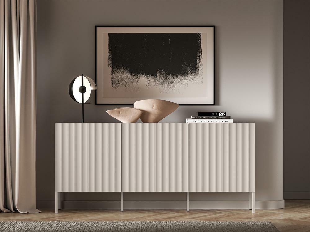 ZobrazitHledáte jedinečný, moderní a zároveň funkční nábytek do vašeho interiéru? Kolekce splní všechna vaše očekávání Třídveřová komoda s jedinečným designem skvěle zapadne do moderních a minimalistických interiérů. Světlá béžová barva mu dodává jemný šarm, který se perfektně hodí k většině aranžmá. Celá kolekce se vyznačuje rafinovaným detailem v podobě drážkovaných předních dílů, které dodávají každé místnosti jedinečný vzhled. Je navržen s ohledem na funkčnost a má šest prostorných polic, do kterých můžete snadno umístit různé druhy předmětů v závislosti na vašich potřebách. Položením korpusu na stabilní kvé nohy v barvě nábytku to celé působí lehce a velmi styl. Kolekce je nejen praktickým úložným řešením, ale také designovým prvkem, který zdůrazní individuální styl každé místnosti. Nečekejte a představte svému interiéru jedinečný charakter již dnes. barva korpusu, čela vyčnívající 7 mm nad desku, hrany chráněné proti mechanickému poškození melaninem, střední/podpěrné nožičky s funkcí výškového nastavení, zadní stěna z bílého HDF, barva: světle béžová.