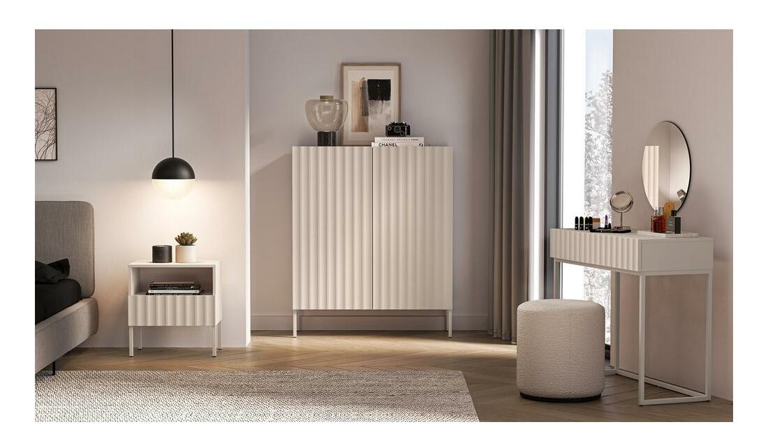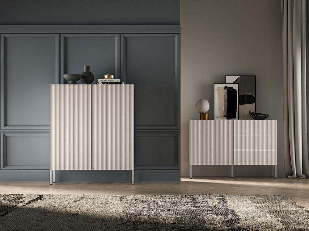 ZobrazitHledáte jedinečný, moderní a zároveň funkční nábytek do vašeho interiéru? Kolekce splní všechna vaše očekávání Vysoká komoda s jedinečným designem dokonale zapadne do moderních a minimalistických interiérů. Světlá béžová barva mu dodává jemný šarm, který se perfektně hodí k většině aranžmá. Celá kolekce se vyznačuje rafinovaným detailem v podobě drážkovaných předních dílů, které dodávají každé místnosti jedinečný vzhled. Je navržen s ohledem na funkčnost a má tři prostorné police, do kterých můžete snadno umístit různé druhy předmětů v závislosti na vašich potřebách. Položením korpusu na stabilní kvé nohy v barvě nábytku to celé působí lehce a velmi styl. Kolekce je nejen praktickým úložným řešením, ale také designovým prvkem, který zdůrazní individuální styl každé místnosti. Nečekejte a představte svému interiéru jedinečný charakter již dnes. barva korpusu, čela vyčnívající 7 mm nad desku, hrany chráněné proti mechanickému poškození melaninem, střední/podpěrné nožičky s funkcí výškového nastavení, zadní stěna z bílého HDF, barva: světle béžová.