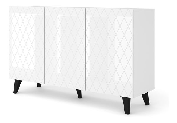 Skříňka Dintanna 145 (bílá + lesk bílý) o výšce 90 cm, šířce 145 cm a hloubce 42 cm je luxusním kouskem nábytku, který vám poskytne dostatek úložného prostoru. Okouzlí vás svými vzorovanými frézovanými dvířky a elegantním bílým leskem. Skříňka stojí na stabilních plastových nohách. Udělejte si radost a pořiďte si krásně uspořádaný prostor s touto úžasnou skříňkou.
