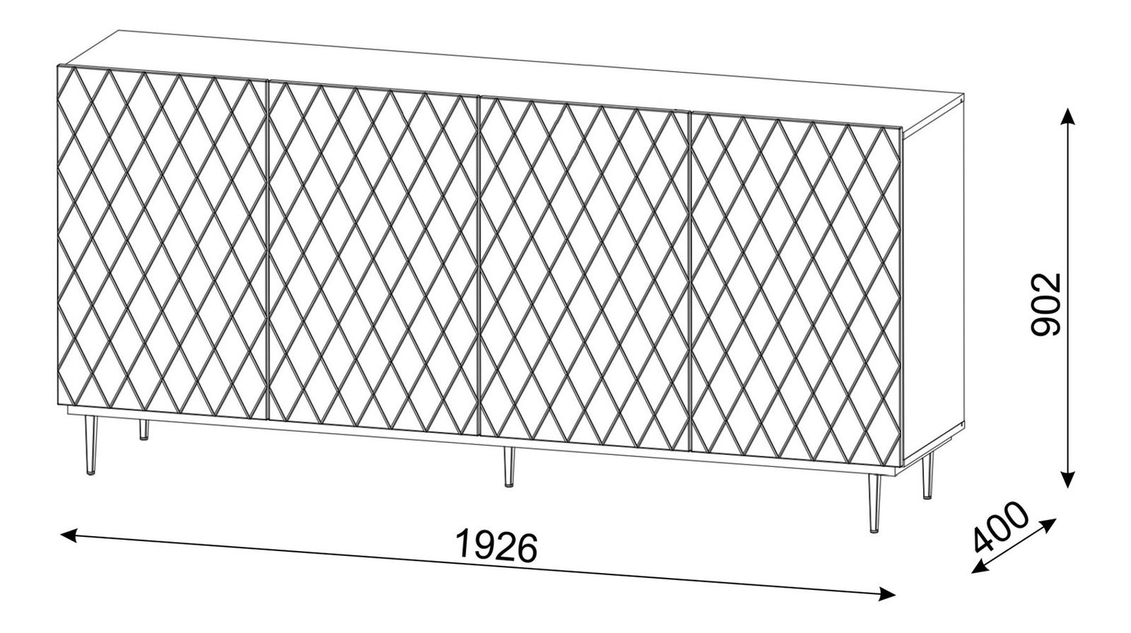 Elegantní a působivé frézování předních front s diamantovým vzorem a lesklým provedením