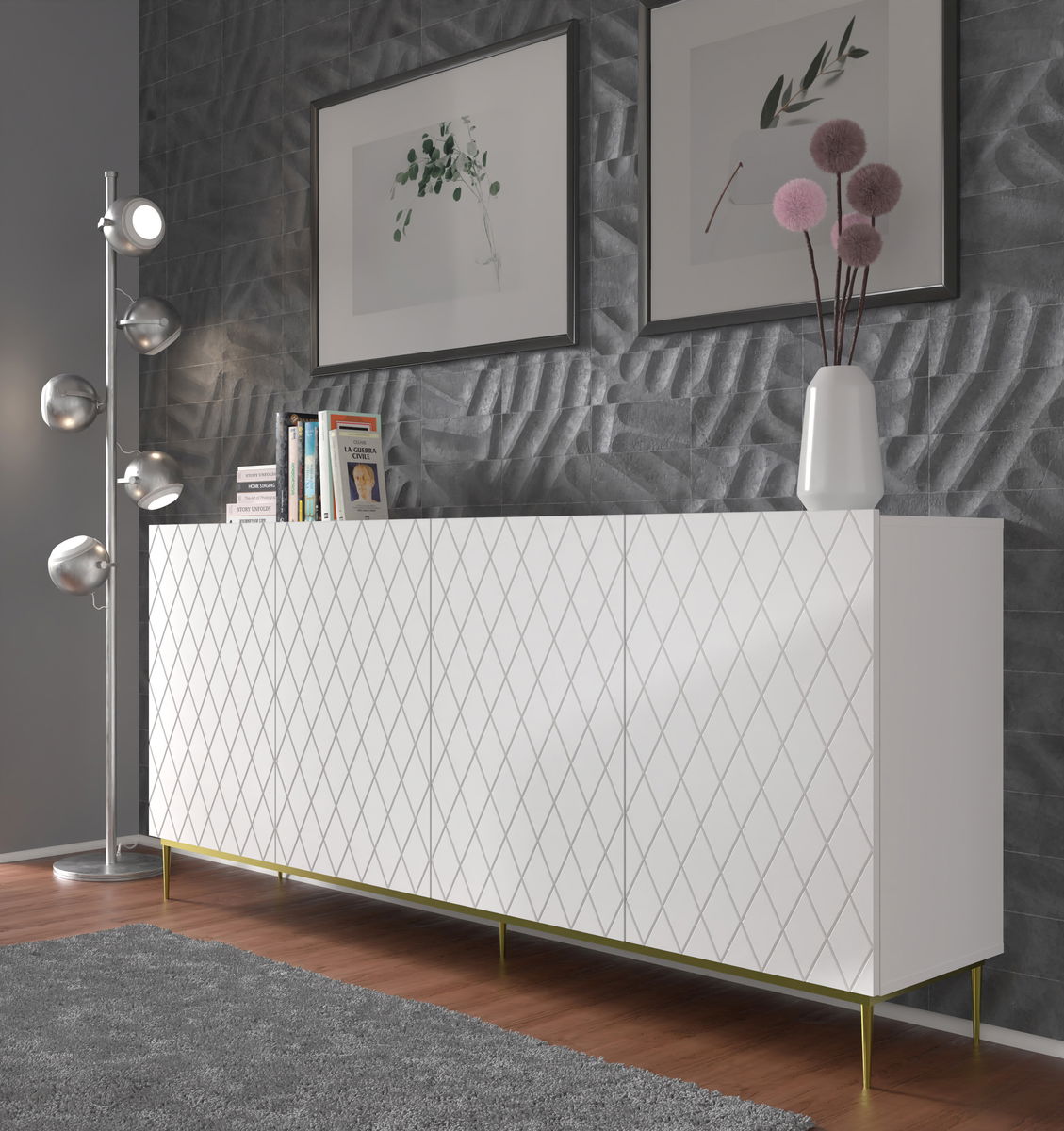 Elegantní a působivé frézování předních front s diamantovým vzorem a lesklým provedením