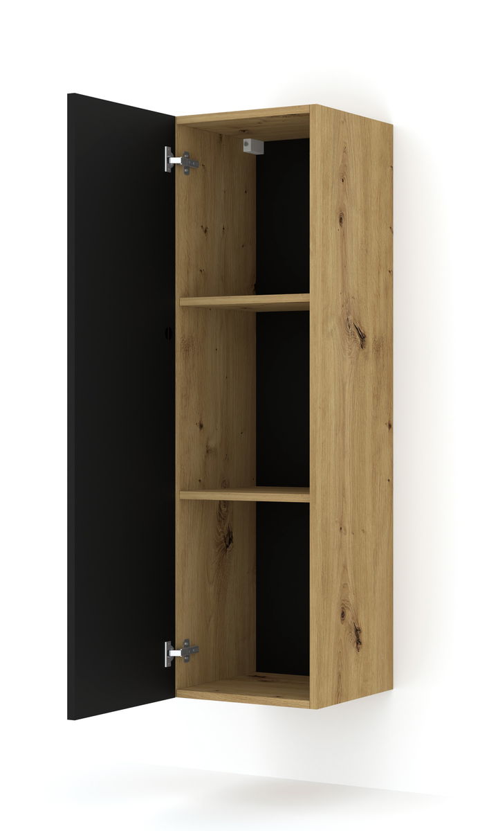 ZobrazitKolekce DUAL je systémový nábytek do obývacího pokoje nebo společenské místnosti. Různé moduly vám umožňují vytvořit si vlastní a jedinečné sestavy. Jednoduché a moderní tvary byly obohaceny o módní barevnou kombinaci – přírodní dub s matnou černou. Představená závěsná skříňka je praktickým doplňkem interiéru. Bude perfektní jako úložný prostor. Celá má dvě police.