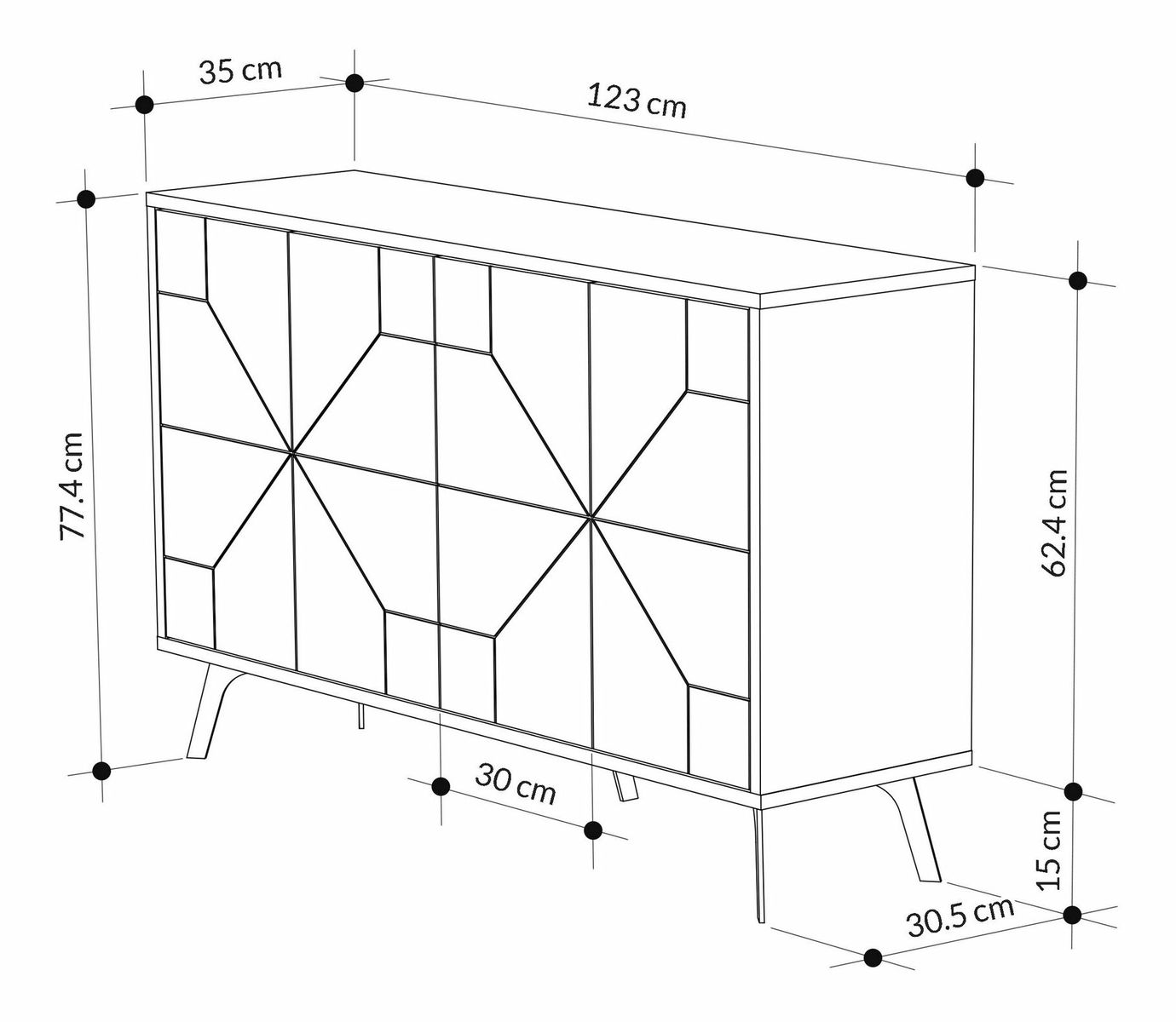 šířka: 123 cm výška: 62,4 cm hloubka: 35 cm