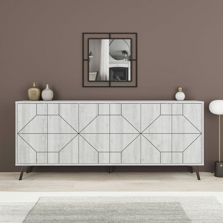 Skříňka - Duben (Bílá) je výborně vybavený a stylový nábytekový kousek, ideální pro uspořádání a skladování věcí v různých místnostech vašeho domova. S výškou 77 cm, šířkou 184 cm a hloubkou 35 cm poskytuje dostatek prostoru pro uložení oblečení, knih, hraček a dalších osobních předmětů. Bílá barva přispívá k elegantnímu a modernímu vzhledu, který se hodí do jakéhokoli interiéru. Skříňka je vyrobena z kvalitního materiálu, který zaručuje dlouhou životnost a odolnost vůči běžnému opotřebení. S tímto praktickým a vkusným nábytkem získáte nejen estetický prvek, ale také praktické řešení pro uspořádání a organizaci vašich věcí.