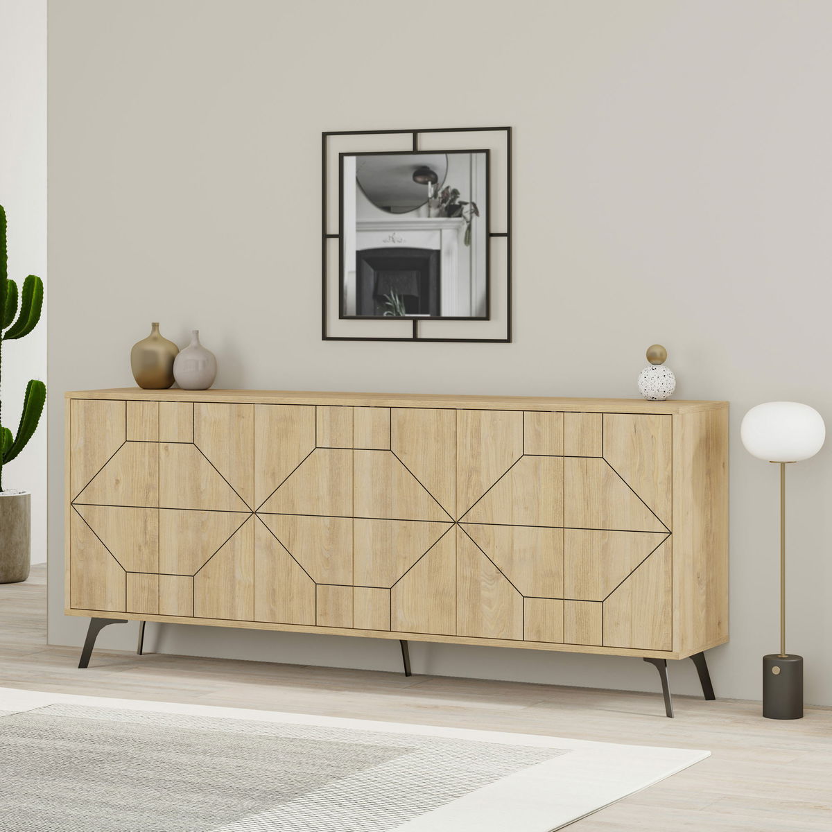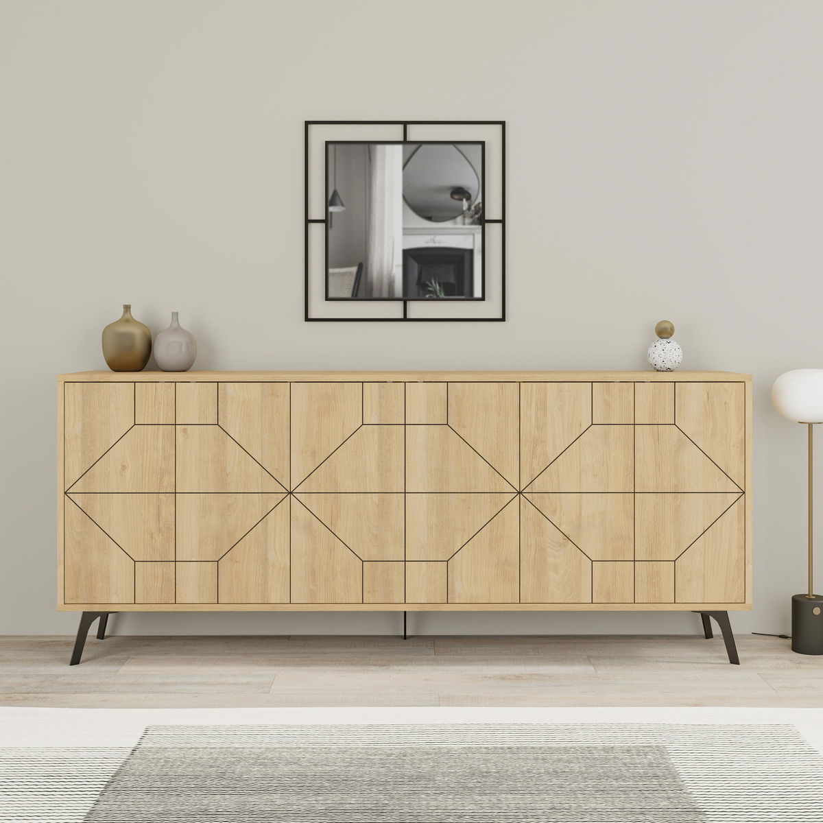Skříňka - Duben (Dub) o výšce 77 cm, šířce 184 cm a hloubce 35 cm je ideálním doplňkem do vašeho domova. Jeho funkční design poskytuje dostatek úložného prostoru pro vaše věci. Skříňka je vyrobena z kvalitního dřeva, což zaručuje její dlouhou životnost. Vysoká kvalita zpracování a pevná konstrukce poskytují stabilitu a odolnost. Skříňka má elegantní a moderní vzhled, který se hodí do jakéhokoli interiéru. Se Skříňkou - Duben (Dub) si zajistíte nejen praktický úložný prostor, ale také stylový a funkční doplněk do vašeho domova.