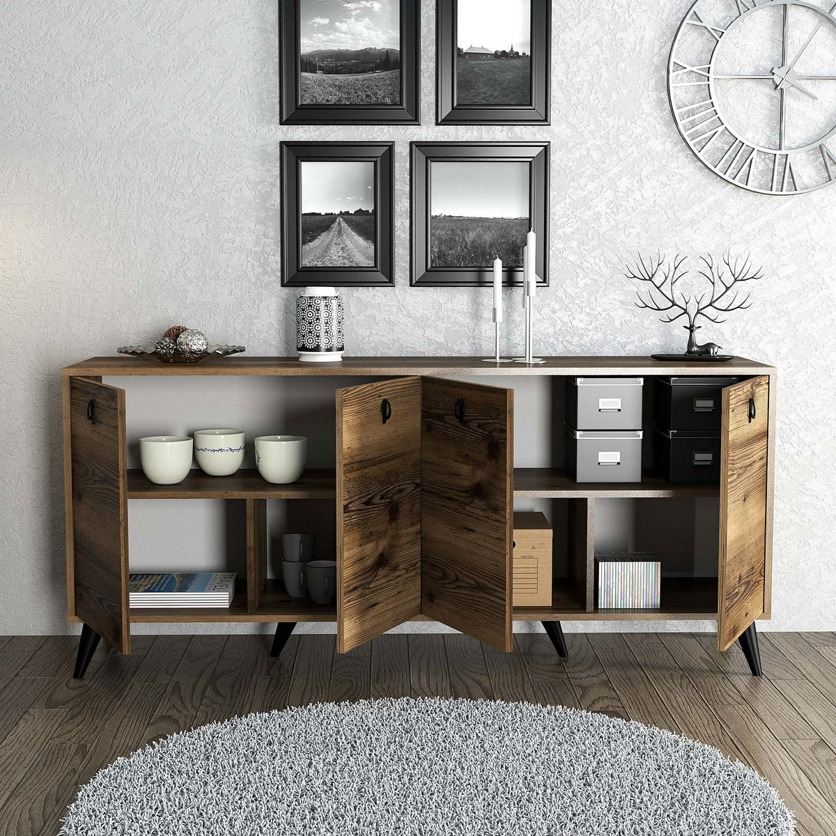 Skříňka - Esmeralda (Ořech) je kvalitní a elegantní nábytek, který se vyjímá svou dokonalou kombinací funkčnosti a stylu. S výškou 80 cm, šířkou 180 cm a hloubkou 45 cm je ideálním řešením pro uskladnění vašich věcí. které poskytuje pevnost a odolnost. Je vybavena dostatečným množstvím úložného. prostoru, včetně polic pro organizaci a uspořádání vašeho oblečení, knih nebo jiných věcí. Svým elegantním a moderním designem přispívá k estetice vašeho interiéru a dodává mu dotek luxusu. ve svém domově.