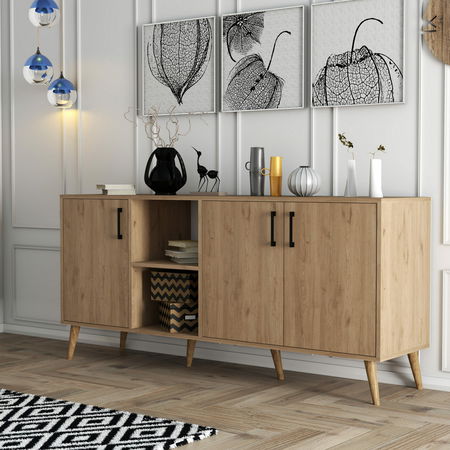 Skříňka - Essex (Dub) je ideálním řešením pro uspořádání a uložení vašich věcí. S výškou 80 cm, šířkou 180 cm a hloubkou 45 cm nabízí dostatek prostoru pro skladování oblečení, bot a dalších doplňků. Je vyrobena z kvalitního dřeva, což zaručuje její odolnost a dlouhou životnost. Skříňka má stylový design s dubovým povrchem, který dodává vašemu interiéru příjemnou atmosféru. S tímto praktickým a elegantním kusem nábytku si zajistíte nejen pořádek, ale také vkusný vzhled vašeho domova.