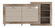 Moderní skříňka neobvyklého designu, která má výrazné hrubší rysy. Bude pěkným doplňkem obývacích pokojů, ložnic nebo pracoven. Má dvoje dvířka a v pravé části dvě police. Barevné provedení skříňky je dub antický a lesk béžový.