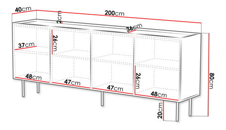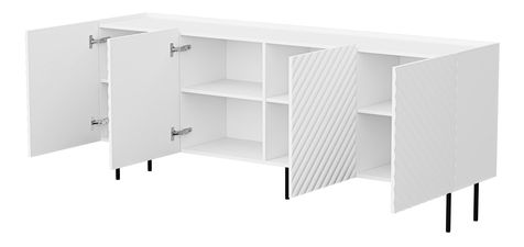 Pokojová skříňka Grotzi 200 4D je funkčnost s velkým stylem! Tato skříňka s policemi, plná třídy a elegance, je dokonalou volbou pro klasický i moderní interiér. Model se vyznačuje krásným, jedinečným zdobením, které mu dodává luxusní vzhled. Má také bezúchytkový systém otevírání – čela mírně vyčnívají nad desku. Velká šířka – až 200 cm – vám umožní uložit všechny nejpotřebnější věci. Navíc můžete popustit uzdu své fantazii a vytvořit originální, zajímavý dekorativní displej na pracovní desce.