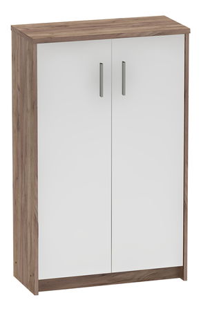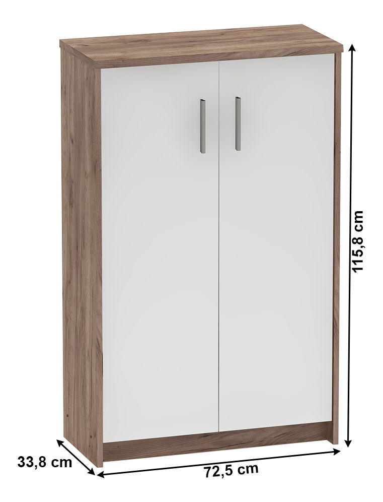 Policová skříňka HANSA 2 NEW 13 (bílá) má výšku 115,5 cm, šířku 72,5 cm a hloubku 33,8 cm, s kombinací barevných odstínů Kraft Dunkel a Bílá. Její praktický design poskytuje dostatek místa pro uložení vašich věcí a pomáhá organizovat váš pracovní prostor. Skříňka má dvě dveře a dvě police, kde můžete uložit své dokumenty, knihy a jiné položky. Dodává se se spodním soklem. Skříňka Hansa 2 NEW 13 je ideální pro ty, kteří hledají účinné řešení pro uspořádání své kanceláře nebo pracovny.