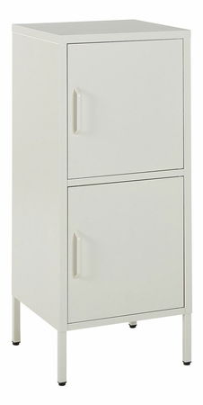 Tato univerzální komoda dokonale zapadne do vašeho interiéru. Díky kompaktním rozměrům se skvěle hodí do kanceláře, obývacího pokoje či ložnice. Je vyrobena z kovu, který zaručuje její stabilitu a díky lakování je odolná vůči korozi. Za dvířky jsou ukryty čtyři poličky, které nabízejí dostatek úložného prostoru pro všechny dokumenty, knihy nebo jiné předměty.