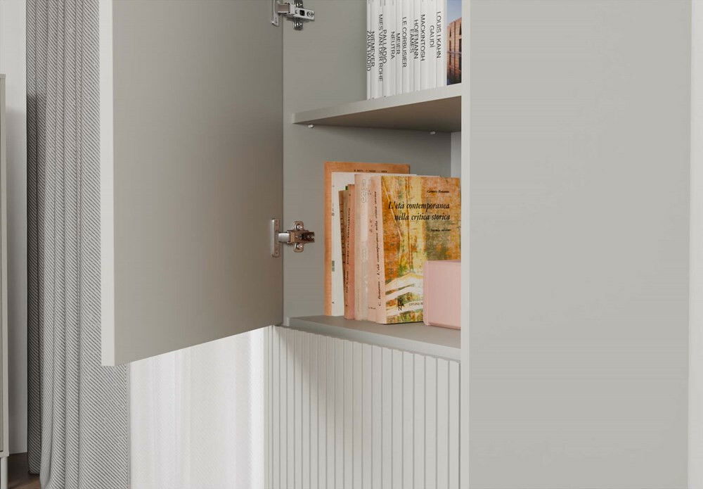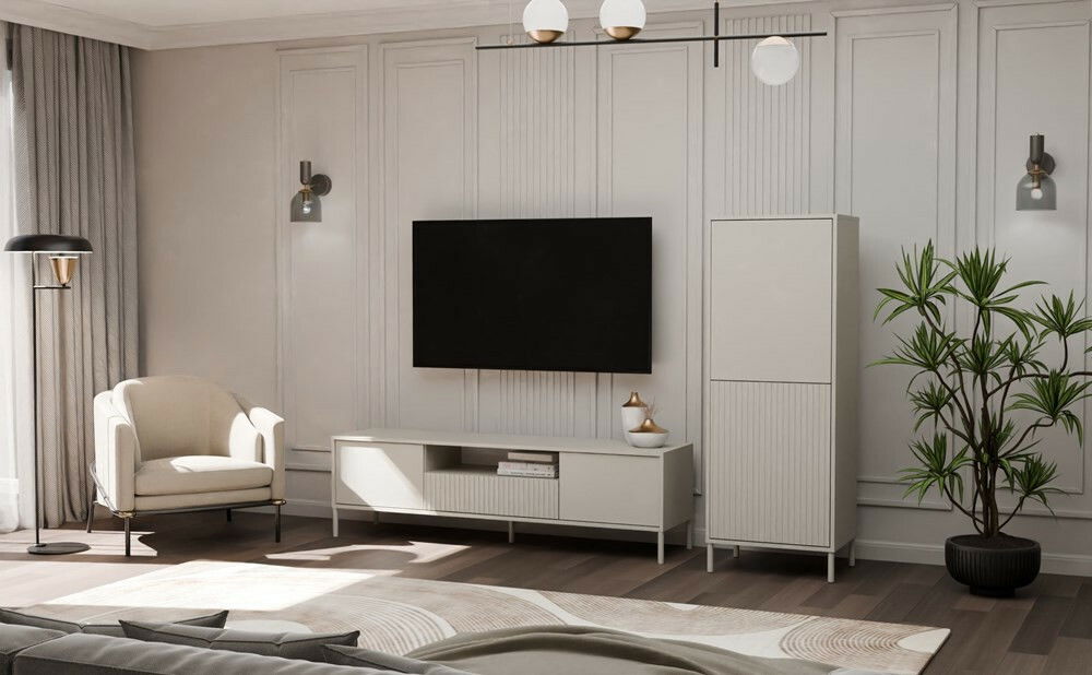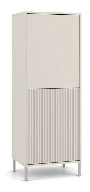 ZobrazitSkříňka Kamarusse Slim 2 v elegantní barvě kašmír je dokonalým spojením stylu a funkčnosti, která obohatí vaše moderní interiéry. Se dvěma nezávislými dveřmi, z nichž jedno má hladkou frontu a druhé Drážkovaný, nabízí nejen dostatek úložného prostoru, ale také jedinečný design. Díky systému TIP-ON se dveře otevírají jednoduše na klik, což zaručuje pohodlné používání bez viditelných úchytek. Stabilní kovové nožičky dodávají skříňce lehkost a moderní vzhled, čímž se stává ideálním doplňkem do obývacího pokoje, ložnice nebo kanceláře.