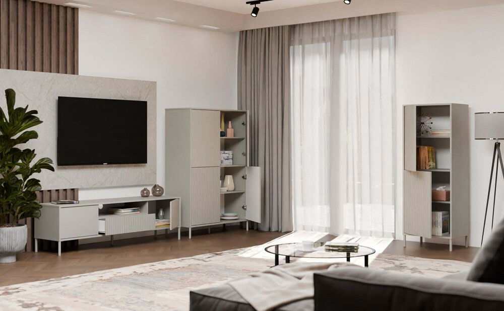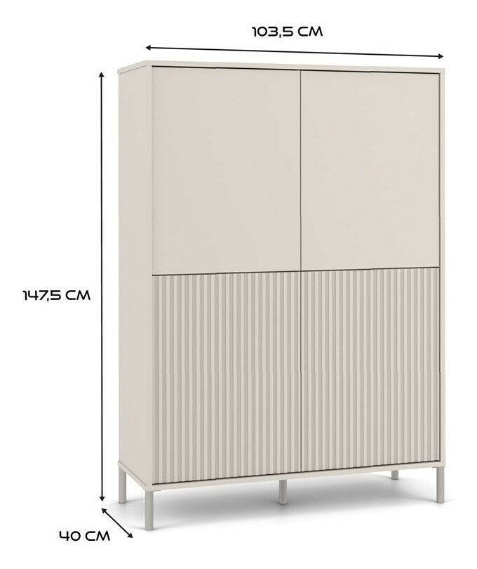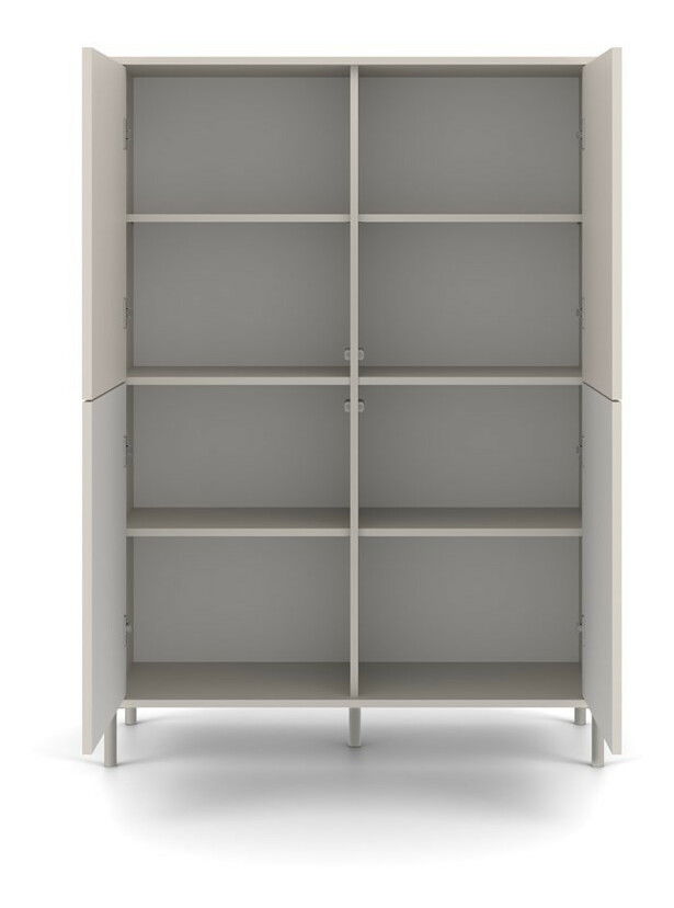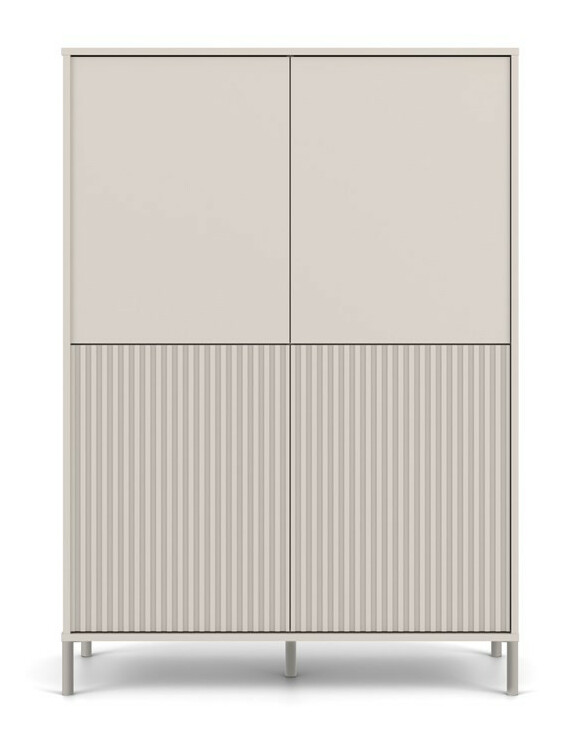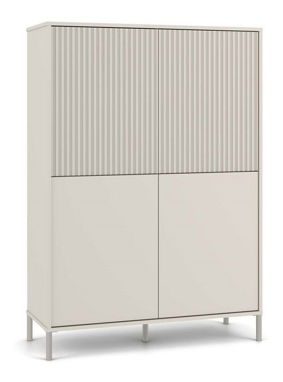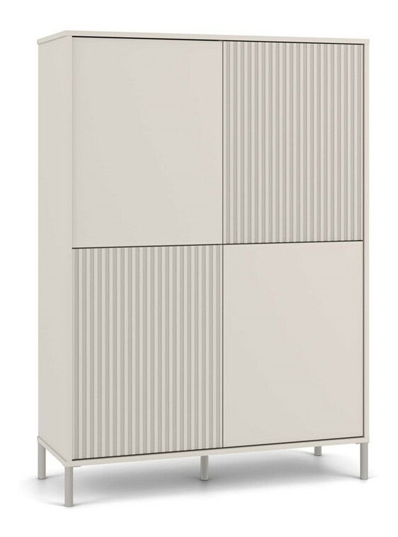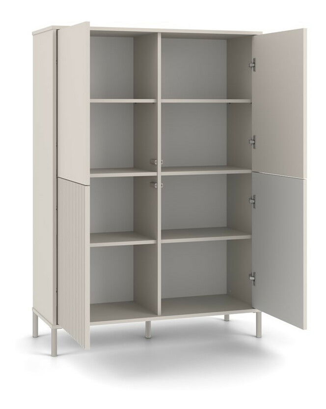 Skříňka Kamarusse Slim 4 v elegantní barvě kašmír je ideálním řešením pro moderní interiéry, které kombinují styl a funkčnost. S rozměry 103,5 cm na šířku a 147,5 cm na výšku nabízí dostatek úložného prostoru rozděleného do osmi praktických sekcí, přičemž její čtyři dveře s možností individuální konfigurace umožňují přizpůsobit vzhled skříňky podle vašich preferencí. Moderní systém TIP-ON zajišťuje pohodlné otevírání bez úchytek, zatímco stabilní kovové nohy dodávají skříňce lehkost a eleganci. Tento kus nábytku se skvěle hodí do různých stylů, od skandinávských po loftové.