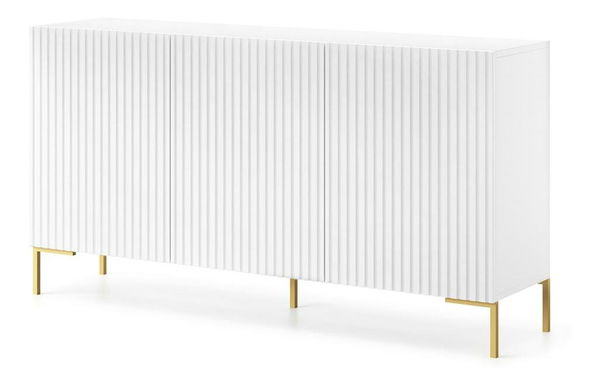Sníte o moderním obývacím pokoji jako z časopisů o interiérovém designu? S kolekcí nábytku je to naprosto možné Třídveřová komoda je náš jedinečný projekt, který upoutá pozornost každého. Nábytek se vyznačuje klasickou formou obohacenou o módní frézování na čelech, které dodává celku jedinečný charakter. Výhodou komody jsou úzké a vysoké nohy, vyrobené z prášku lakované oceli - korpus díky nim získává nejen pohledovou lehkost, ale také stabilitu. Navíc toto řešení usnadní udržování čistoty pod nábytkem. Vnitřek je rozdělen do šesti polic, do kterých se úspěšně vejdou oděvy, přídavné nádobí nebo důležité dokumenty Detaily produktu: skříňka je vyrobena z 16 mm laminované desky, která je odolná vůči vlhkosti a poškrábání, což zajistí dlouhé používání, lišty. na přední straně jsou vyrobeny z MDF,