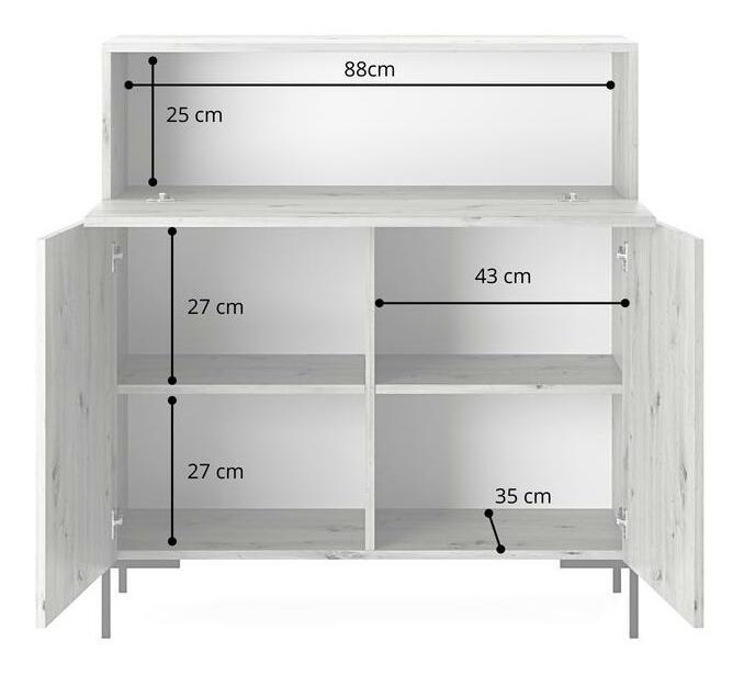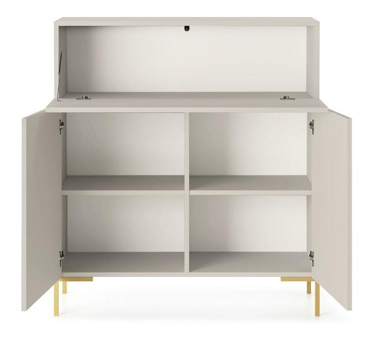 Sníte o moderním obývacím pokoji jako z časopisů o interiérovém designu? To je absolutně možné s kolekcí nábytku Dvoudveřová komoda je náš jedinečný projekt, který upoutá pozornost každého. Nábytek se vyznačuje klasickou formou obohacenou o módní frézování na čelech, které dodává celku jedinečný charakter. Výhodou komody jsou úzké a vysoké nohy, vyrobené z prášku lakované oceli - korpus díky nim získává nejen pohledovou lehkost, ale také stabilitu. Navíc toto řešení usnadní udržování čistoty pod nábytkem. Vnitřek je rozdělen do čtyř polic, které můžete využít k uložení oblečení, dokumentů nebo drobností, na které vám obvykle chybí místo Podrobnosti o produktu: skříňka je vyrobena z 16mm laminované desky U750 ST9 Grey Taupe, která je odolná vůči vlhkosti. a škrábanců, což zajistí dlouhé používání, zlaté nohy jsou vyrobeny z prášek lakované oceli, díky čemuž jsou hladké, bez šmouh a bublin, lišty na přední straně jsou vyrobeny z MDF.
