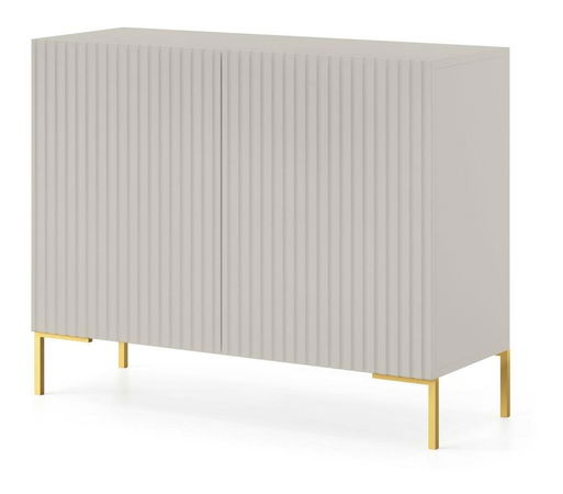 Sníte o moderním obývacím pokoji jako z časopisů o interiérovém designu? To je absolutně možné s kolekcí nábytku Dvoudveřová komoda je náš jedinečný projekt, který upoutá pozornost každého. Nábytek se vyznačuje klasickou formou obohacenou o módní frézování na čelech, které dodává celku jedinečný charakter. Výhodou komody jsou úzké a vysoké nohy, vyrobené z prášku lakované oceli - korpus díky nim získává nejen pohledovou lehkost, ale také stabilitu. Navíc toto řešení usnadní udržování čistoty pod nábytkem. Vnitřek je rozdělen do čtyř polic, které můžete využít k uložení oblečení, dokumentů nebo drobností, na které vám obvykle chybí místo Podrobnosti o produktu: skříňka je vyrobena z 16mm laminované desky U750 ST9 Grey Taupe, která je odolná vůči vlhkosti. a škrábanci, což zajišťuje dlouhé používání, lišty na přední straně jsou vyrobeny z MDF,