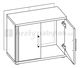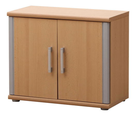 Malá skříňka s úložným prostorem, který je uzavřen dvěma dvířky.