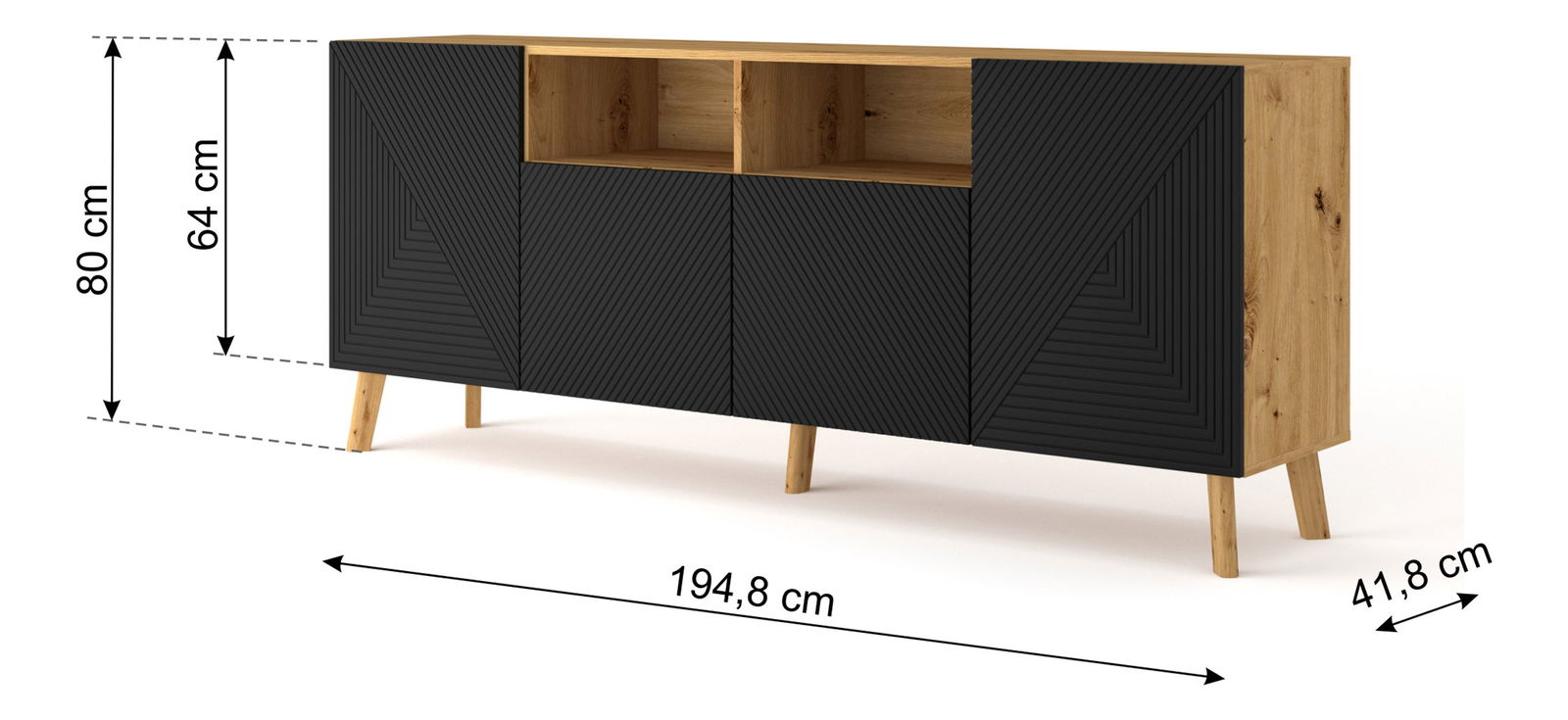 Push to open - boční dvířka jsou křídlová a středová dvířka jsou výklopná