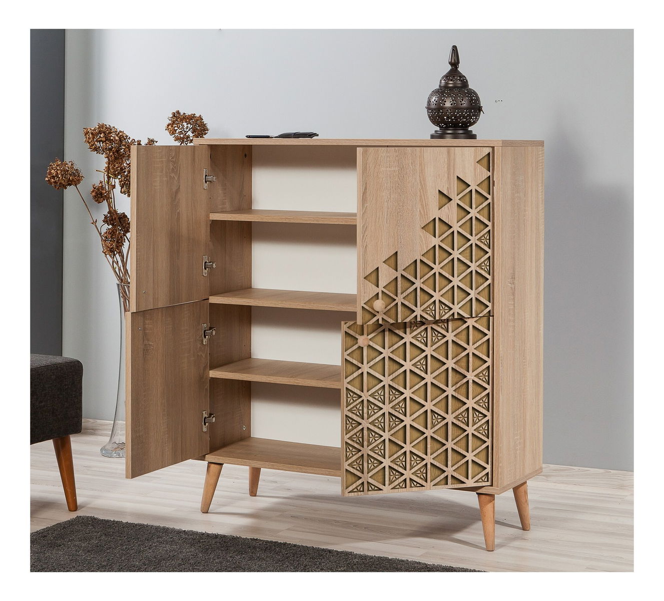 tloušťka: 18 mm, habrové nohy, kovové rukojeti, uv nátěr, šířka: 95 cm, výška: 111 cm, hloubka: 36 cm, výška police: 19,8 cm, výška nohy: 15 cm