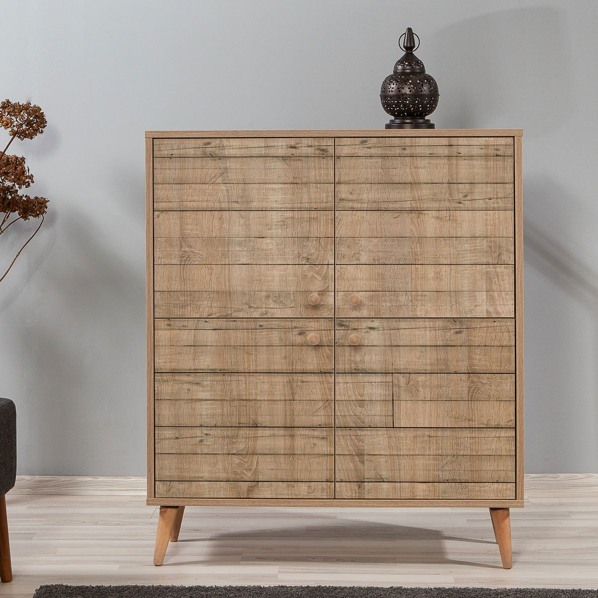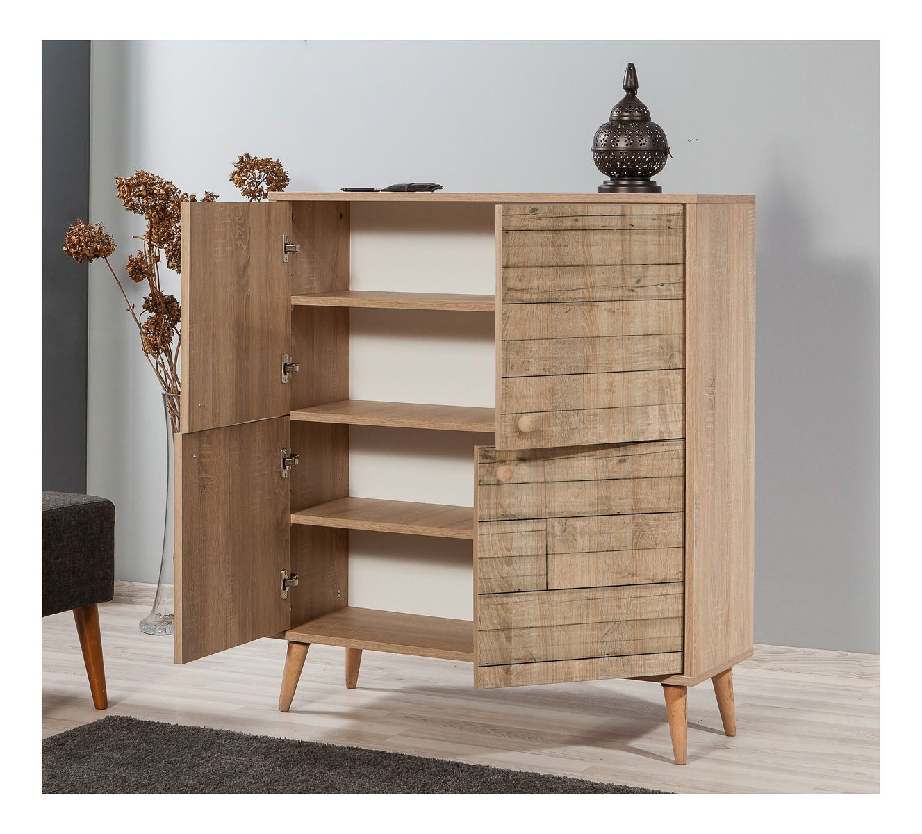 tloušťka: 18 mm, habrové nohy, kovové rukojeti, uv nátěr, šířka: 95 cm, výška: 111 cm, hloubka: 36 cm, výška police: 19,8 cm, výška nohy: 15 cm