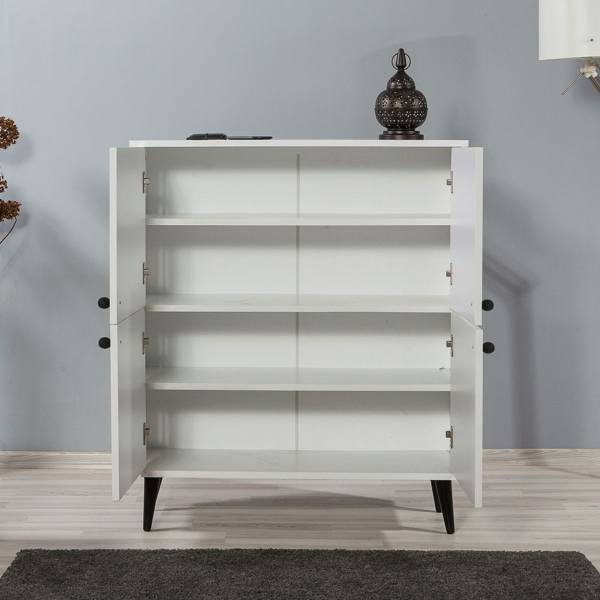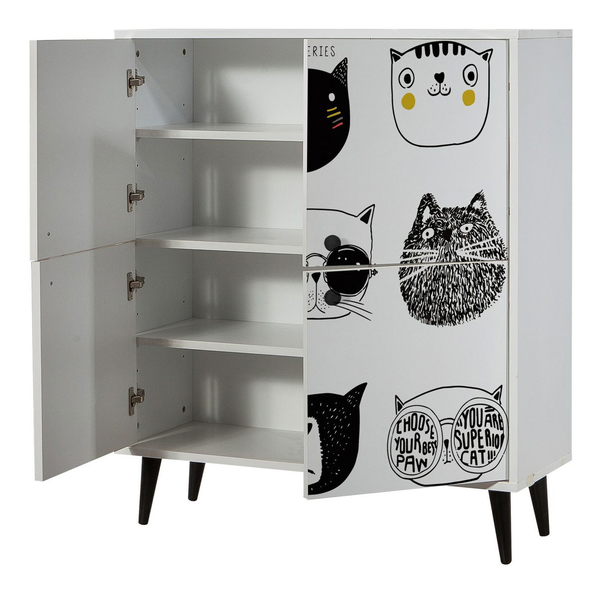 Skříňka - Michael je skvělým doplňkem do vašeho domova. S výškou 111 cm a šířkou 95 cm v bílo-černé barvě, tato skříňka nabízí dostatečně velký úložný prostor. , což zaručuje její trvanlivost a odolnost. knih, hraček, nebo jakýchkoli dalších věcí. Skříňka - Michael je perfektní volbou pro každého, kdo hledá stylovou a praktickou skříňku do svého interiéru.