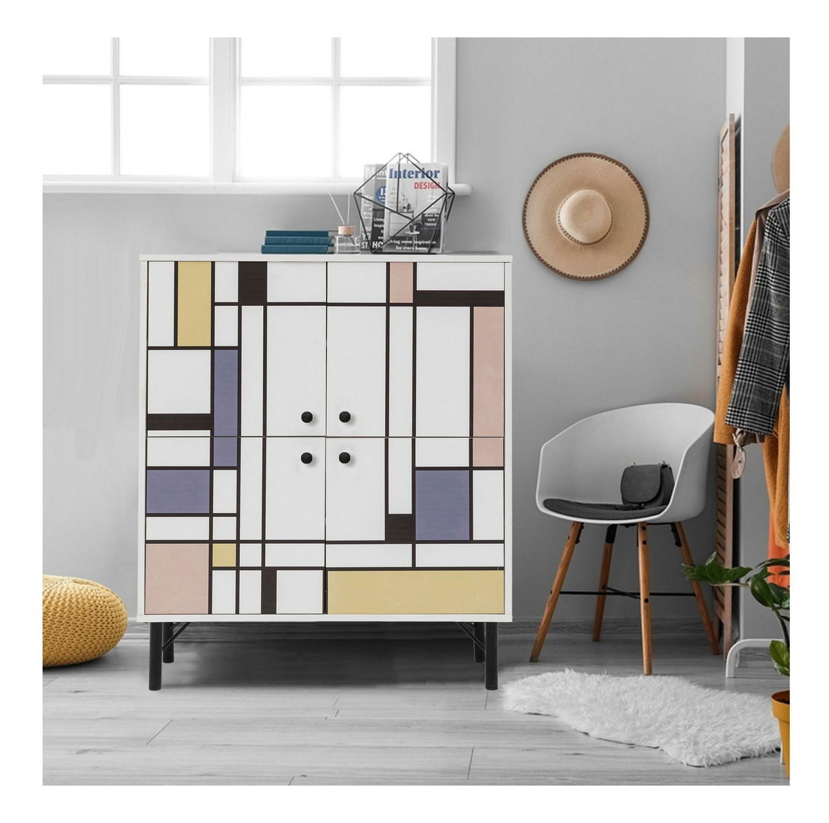 Skříňka Maluxe (bílá + hnědá + purpurová + žlutá)