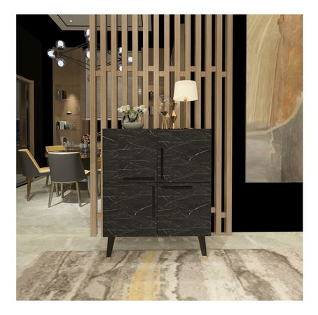 Jídelní stůl Fenix (šedý mramor + černá) (pro 4 až 8 osob)