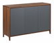 Uložte své oblíbené věci stylovým způsobem. Tato skříňka se třemi dveřmi je ideální do jakéhokoli moderního obývacího pokoje, ložnice nebo velké předsíně, a díky němu budete mít po ruce všechny potřebné věci. Vrchní část a boky komody jsou dýhovány v barvě ořechového dřeva, což zajišťuje přirozený dřevěný vzhled a retro nádech. Ozdobte komodu vázami, knihami nebo květinami, abyste krásně vyplnili prostor.