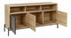 Zkrášlete svou domácnost s touto praktickou komodou v moderním designu, která se hodí do všech současných interiérů. Tento kousek s povrchovou úpravou v hřejivém odstínu světlého dřeva a šedou přední částí, je doplněn elegantními kovovými nohami v černé barvě. Komoda poskytuje dostatek úložného prostoru v podobě 3 skříněk a 3 otevřených polic, což vám umožní úhledně uspořádat a vystavit všechny vaše doplňky a dekorace.