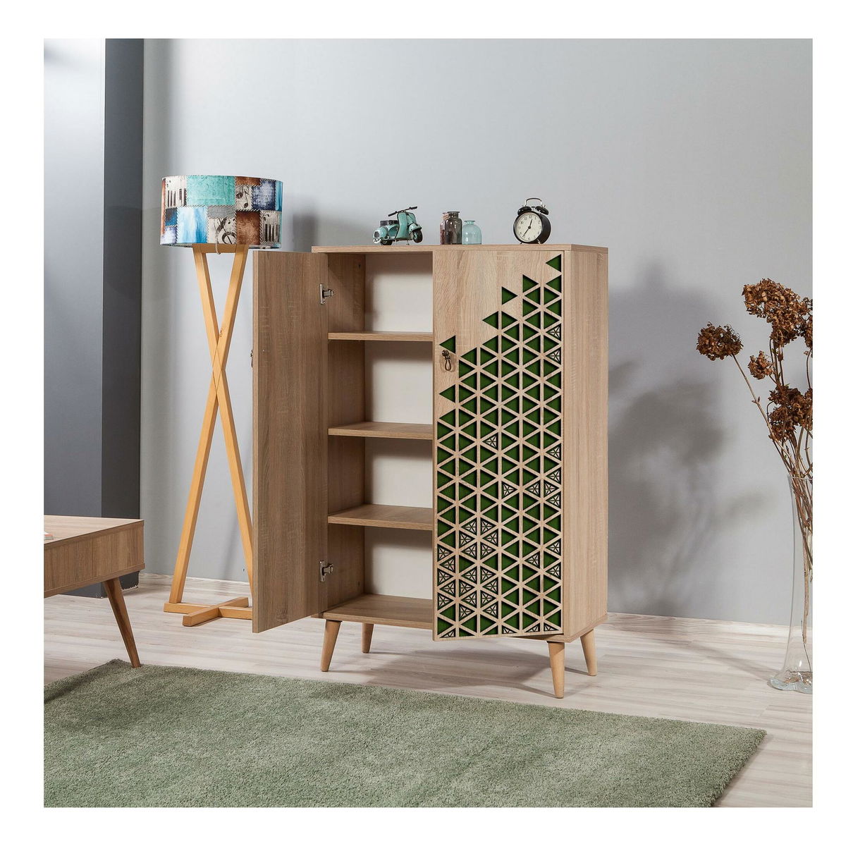 tloušťka: 18 mm, habrové nohy, kovové rukojeti, šířka: 80 cm, výška: 127 cm, hloubka: 36 cm, výška police: 25,5 cm, výška nohy: 15 cm