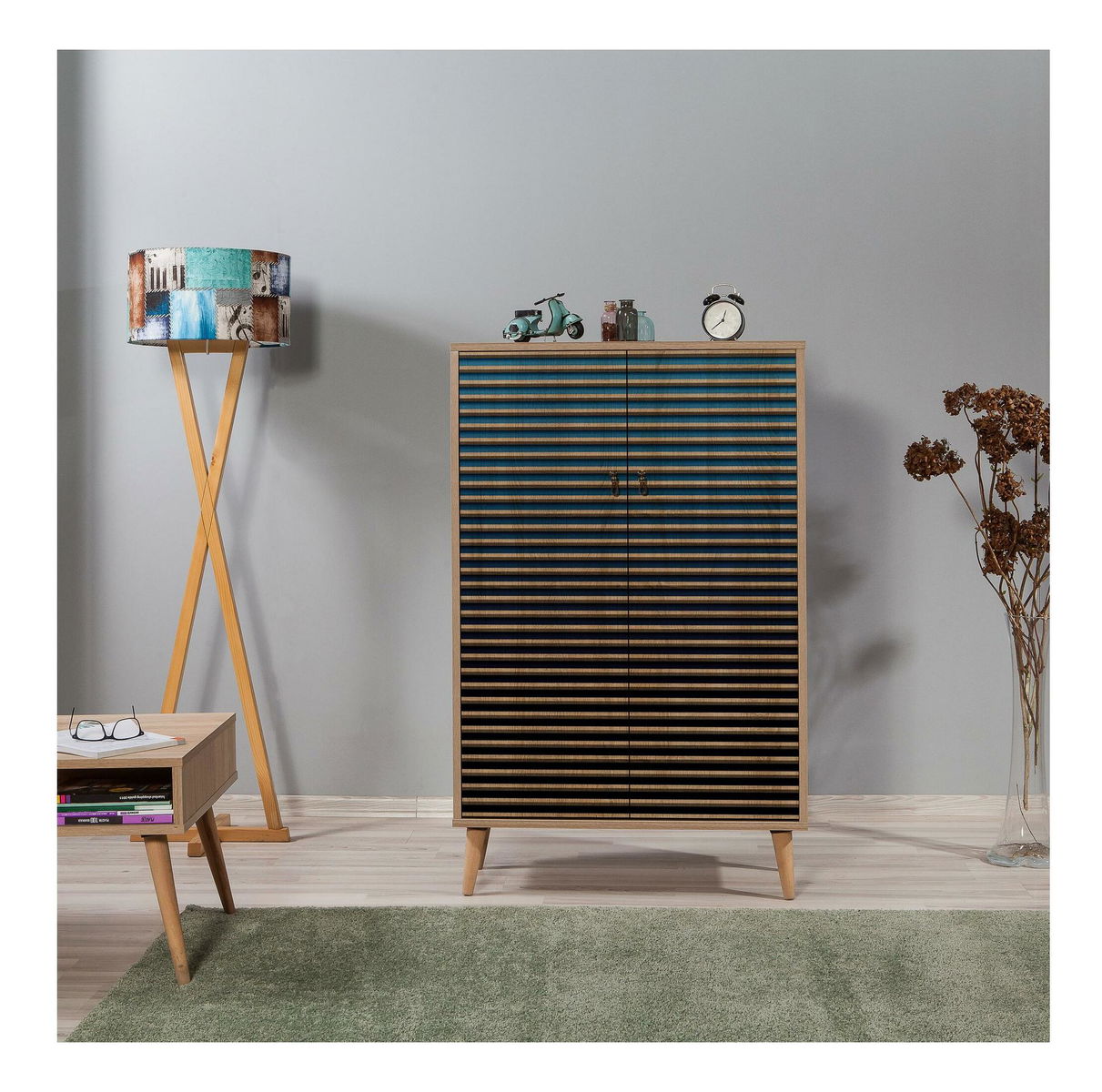 tloušťka: 18 mm, habrové nohy, kovové rukojeti, šířka: 80 cm, výška: 127 cm, hloubka: 36 cm, výška police: 25,5 cm, výška nohy: 15 cm