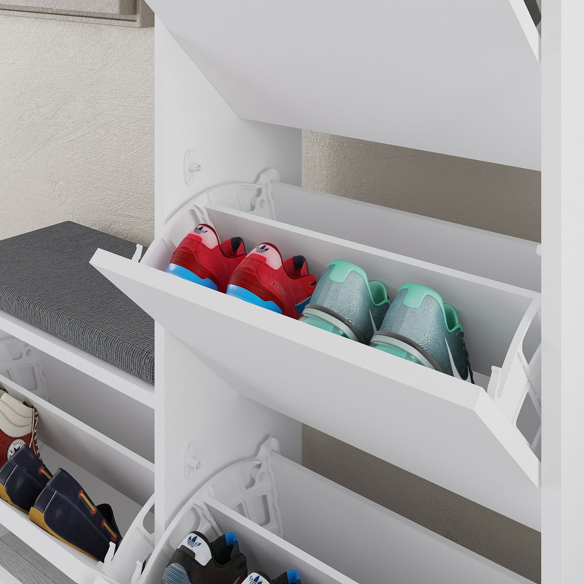 Skříňka na boty - Dora (Bílá) je praktickým a stylovým řešením pro uspořádání vaší obuvi. S její výškou 118,5 cm, šířkou 105 cm a hloubkou 26 cm poskytuje dostatek prostoru pro uložení spousty bot. Bílá barva přidává skříňce elegantní a moderní vzhled, který se snadno hodí do jakéhokoli interiéru. Skříňka je vyrobena z kvalitních materiálů, které zaručují její pevnost a odolnost. S Dora skříňkou na boty si jednoduše udržíte pořádek ve vaší obuvi a zároveň přidáte do svého domova stylový doplněk.