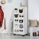 ZobrazitSkříňka na boty Fiki 1 (bílá + černá) je skvělým řešením pro uspořádání vaší botovací zóny. Vysoká 127 cm, široká 50 cm a hluboká 38 cm, poskytuje dostatek místa pro uskladnění vašich bot. Skříňka je vyrobena z kvalitní 100% melaminové desky, čímž je zaručena její odolnost a pevnost. Bílá a černá kombinace barev dodávají skříňce moderní a elegantní vzhled, který se hodí do každé domácnosti. Zabudované držáky na boty udrží vaši obuv v pořádku a ušetří místo ve skříni nebo na chodbě. Skříňka na boty Fiki 1 je jednoduchá na sestavení a poskytuje efektivní řešení pro vaši botovou sbírku.