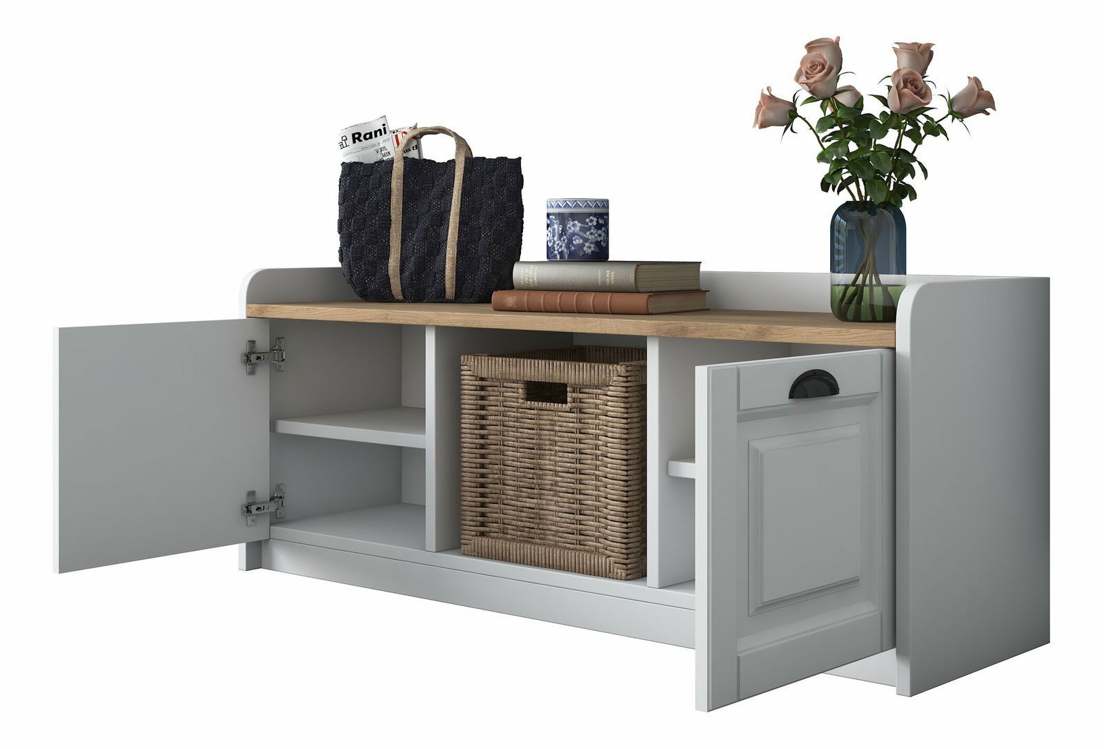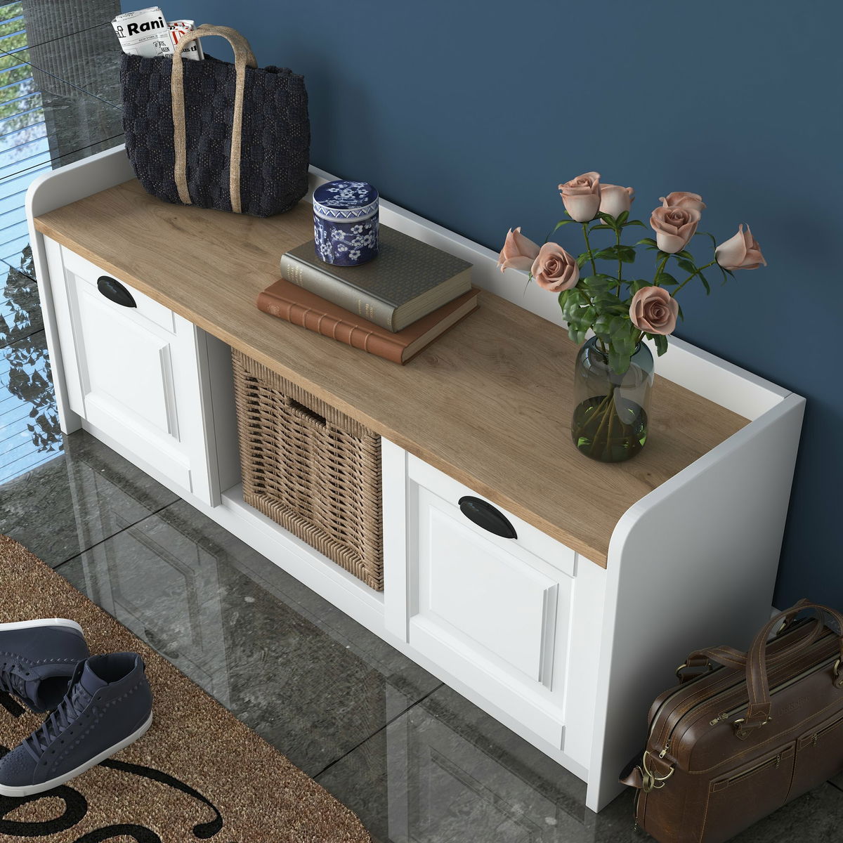 Skříňka na boty - Pixie 2 (Bílá + Ořech) je praktický a stylový úložný prostor pro vaši obuv. S výškou 45 cm, šířkou 120 cm a hloubkou 40 cm poskytuje dostatek místa pro uskladnění vašich bot. Je vyrobena z kvalitního dřeva v kombinaci bílá + ořech, což jí dodává elegantní a moderní vzhled. Skříňka je vybavena policemi a prostorem pro uložení bot, což vám umožní udržet vaši obuv v pořádku a dobře organizovanou. S tímto produktem získáte nejen praktický úložný prostor, ale také esteticky příjemný doplněk do vašeho interiéru.