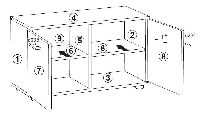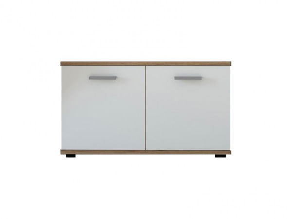 ZobrazitVychutnejte si pohodlí a udržujte pořádek ve vašem vstupním prostoru pomocí skříňky na boty Sankt C v dub wotan a bílá matná barvě. Výška 45,9 cm a hloubka 35 cm jsou dostatečné pro uskladnění bot, obuvi nebo doplňků. Skříňka má dvě police a dvě dveře se stříbrnými plastovými úchyty. Nábytek je vyroben z kvalitní laminované dřevotřískové desky s ABS hranami. Nožičky jsou vyrobeny z plastových kluzáků. Skříňka přichází v jednom balíku o rozměrech 87x44,7x11 cm a váze 19 kg. Získejte praktický a moderní doplněk do svého interiéru s touto skříňkou na boty Sankt C.