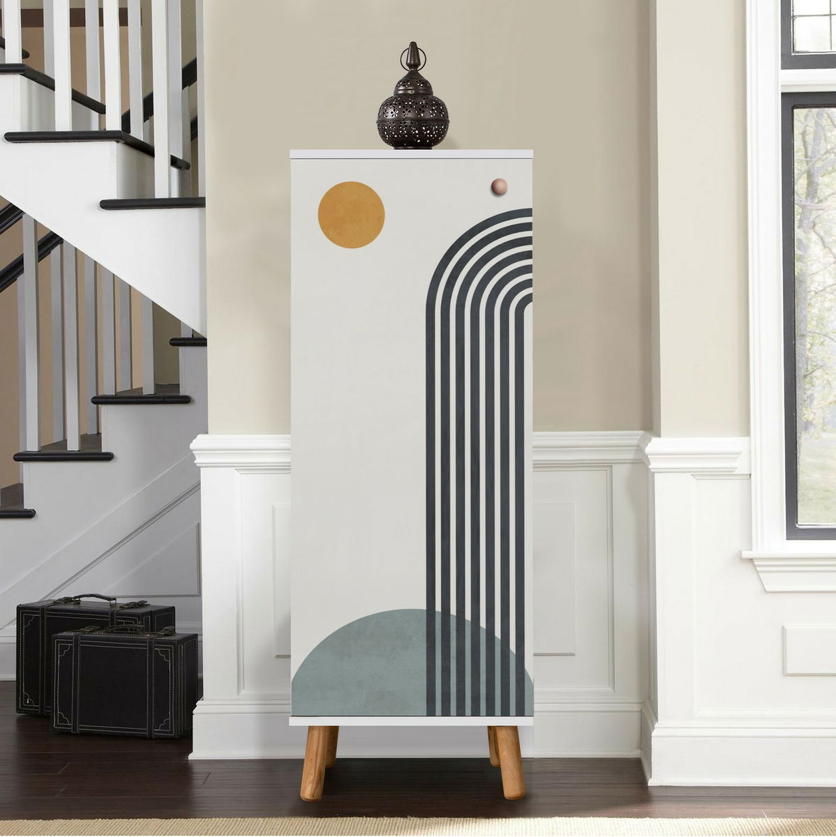 tloušťka: 18 mm, nohy z masivního dřeva, rukojeti z masivního dřeva, uv nátěr, velikost: šířka: 50 cm, výška: 135 cm, hloubka: 38 cm