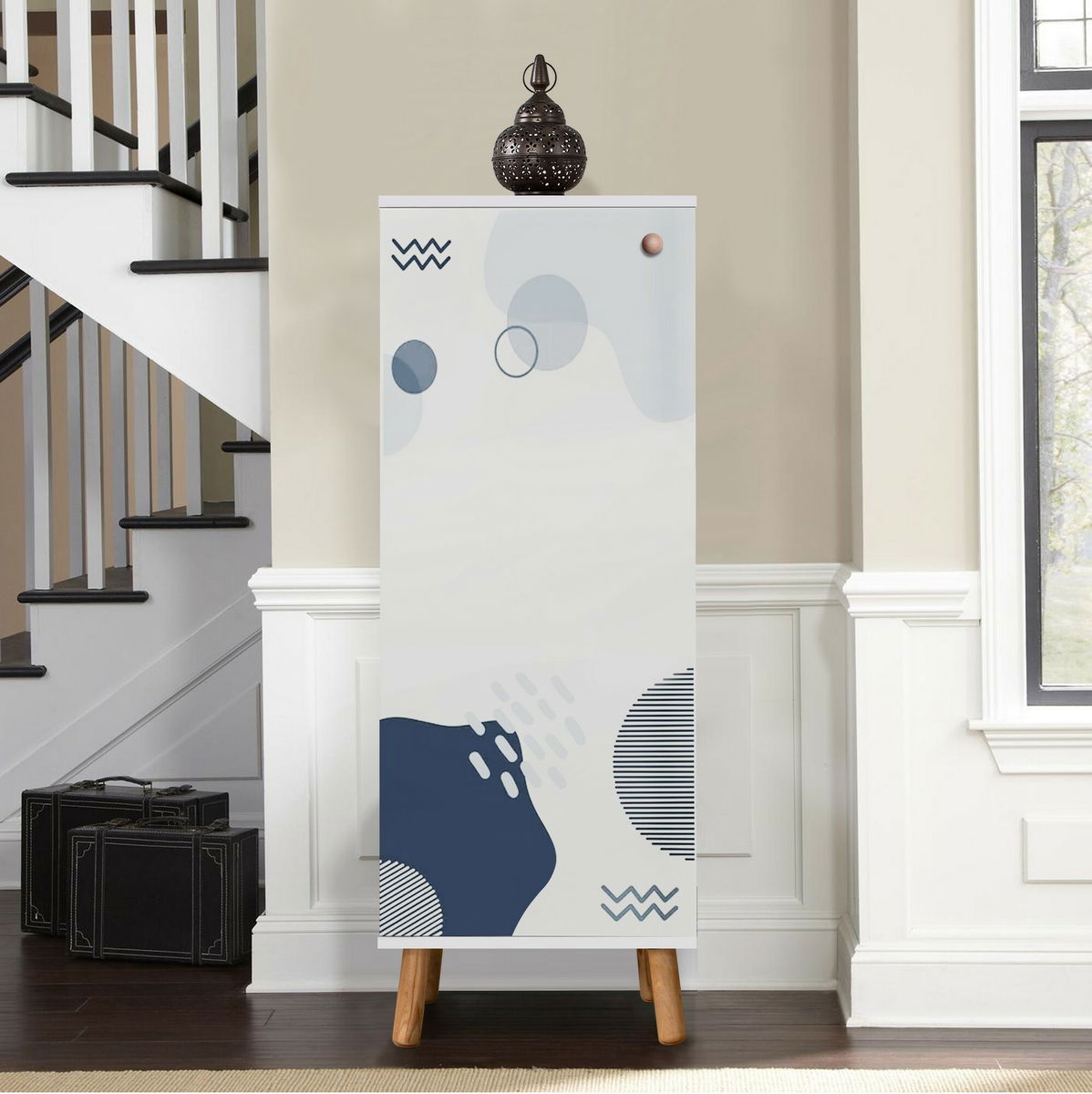 tloušťka: 18 mm, nohy z masivního dřeva, rukojeti z masivního dřeva, uv nátěr, velikost: šířka: 50 cm, výška: 135 cm, hloubka: 38 cm