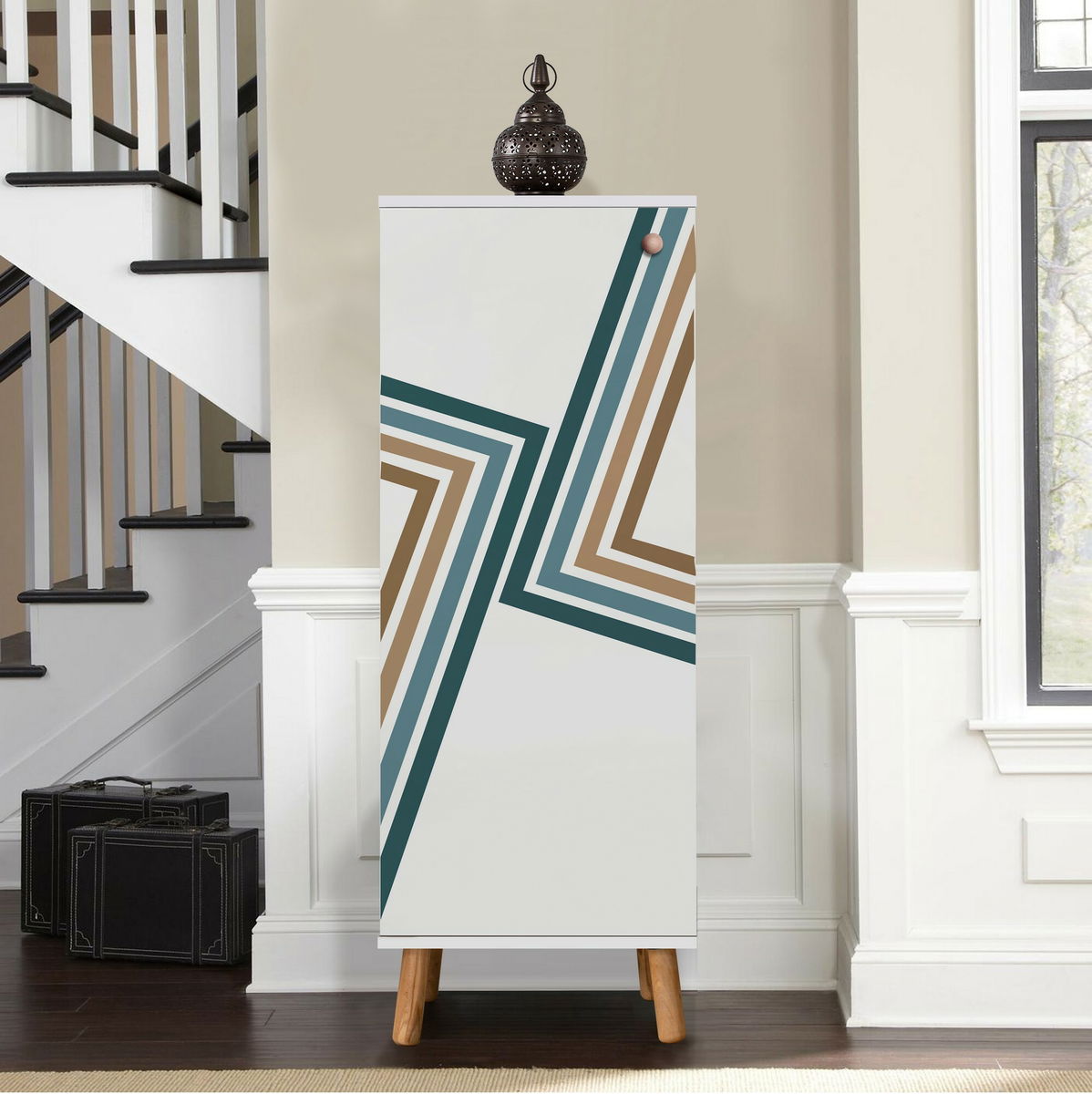 tloušťka: 18 mm, nohy z masivního dřeva, rukojeti z masivního dřeva, uv nátěr, velikost: šířka: 50 cm, výška: 135 cm, hloubka: 38 cm