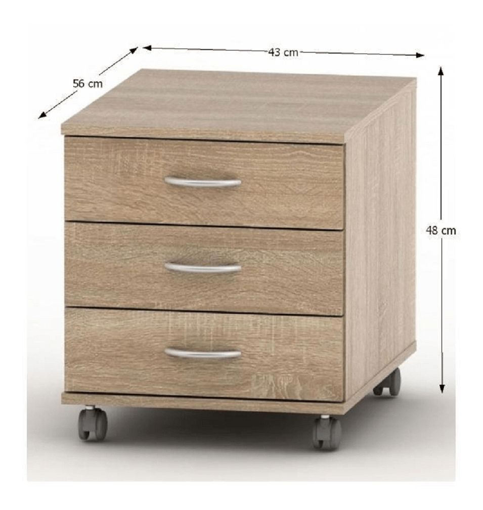 Skříňka na kolečkách Asista AS 016 (Dub Sonoma) je praktický nábytek do každé kanceláře nebo pracovny. S výškou 48 cm a hloubkou 56 cm, má tři zásuvky s širšími kovovými úchyty. Skříňka patří do rozmanité sektorové sestavy od Asista, která je vhodná pro zařízení kanceláří, pracoven, školních učeben nebo zasedacích místností. Materiál DTD laminovaná s ABS hranami a můžete si vybrat z barevných provedení buk, dub Sonoma, Bardolino tmavé a třešeň. ŠxVxH rozměry skříňky jsou 70x70x76 cm o tloušťce materiálu 16 mm. Skříňka se dodává v demontu.