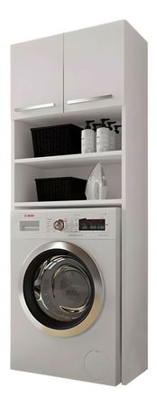 Tloušťka laminované desky 16 mm Plastové rukojeti, 2x police skryté za dvířky, 2x nekryté police Šířka pro pračku je 60,8 cm. Výška otvoru pro pračku je 89 cm. produkt je v baleních ve kterých najdete vše pro svépomocnou montáž včetně všech prvků a montážního návodu.