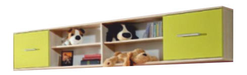 Širší závěsná skříňka Emio jednoduchého a moderního designu se dvěma dvířky a čtyřmi otevřenými poličkami. Hodí se zejména do dětských a studentských pokojů. Barevné provedení skříňky je dub sonoma v kombinaci se zelenou.