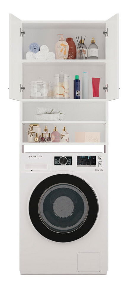 ZobrazitSkříňka nad pračku Perdieron 1 je ideálním řešením pro moderní koupelny, kde je třeba efektivně využít prostor. S minimalistickou konstrukcí a elegantní bílou barvou se skvěle hodí do každého interiéru. Tento praktický nábytek nabízí dvě poličky schované za dvířky a dvě otevřené poličky, což umožňuje přehledné uspořádání ručníků, čistících prostředků a dalších koupelnových doplňků. Vyrobená z kvalitní laminované desky o tloušťce 16 mm, Perdieron 1 je nejen stylová, ale také funkční, čímž přispívá k pohodlí ve vaší koupelně.