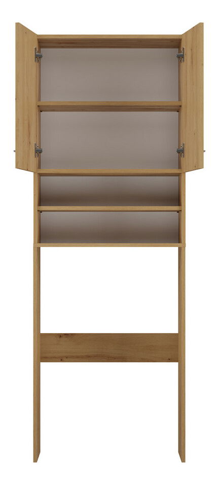 ZobrazitSkříňka nad pračku Perdieron 1 v elegantní barvě dub artisan je ideálním řešením pro moderní koupelny, kde je třeba efektivně využít prostor. S minimalistickou konstrukcí a dvěma poličkami schovanými za dvířky, jakož i dvěma otevřenými poličkami, nabízí dostatek úložného prostoru pro všechny potřebné koupelnové doplňky, jako jsou ručníky a čistící prostředky. Vyrobená z kvalitní laminované desky o tloušťce 16 mm, tato skříňka je nejen praktická, ale také stylová, čímž dodává vaší koupelně moderní vzhled.