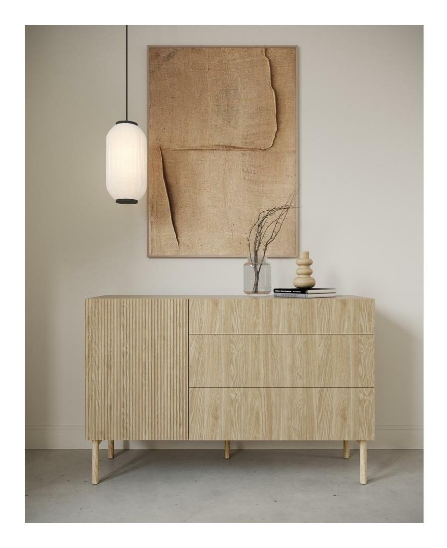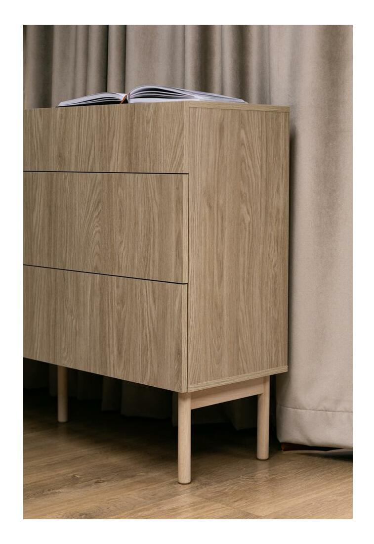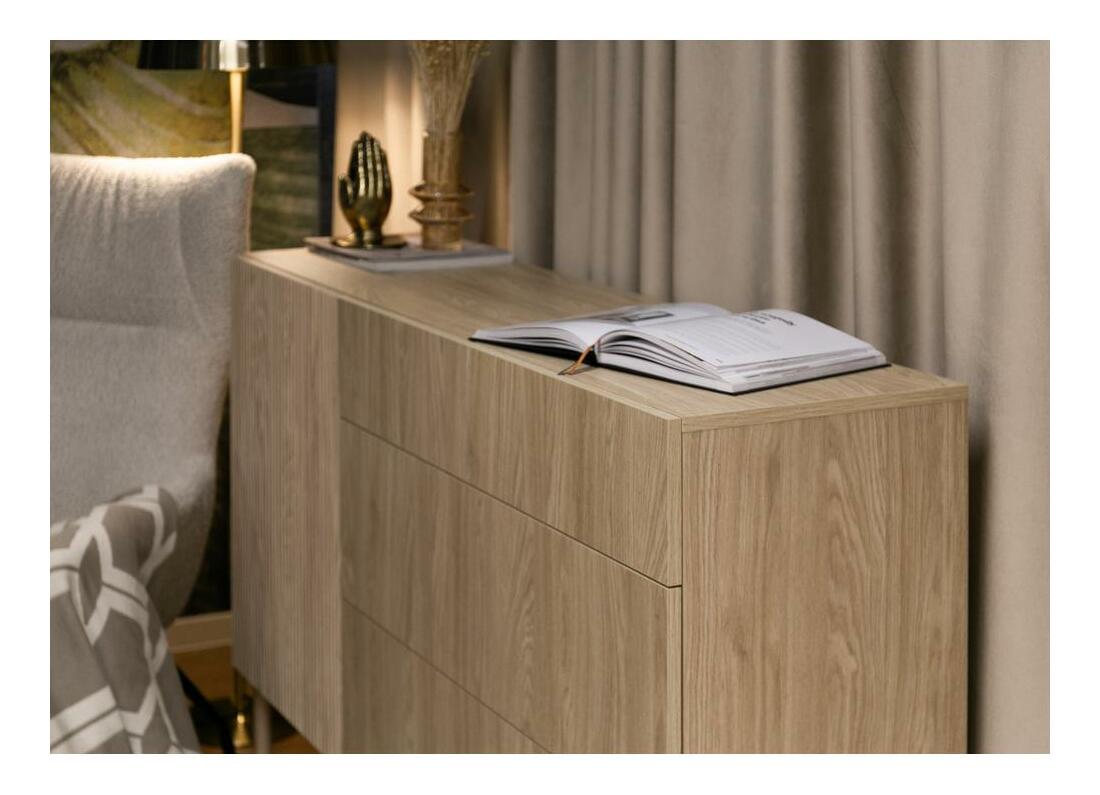 ZobrazitSníte o interiéru, ve kterém se snoubí minimalismus japonského designu s teplem skandinávského dřeva? Objevte kolekci a vneste do svého bytu klid, eleganci a funkčnost Jednodveřová komoda je harmonickým spojením funkčnosti a estetiky v japonském stylu Nábytek je vyroben z odolné laminované desky a MDF desky s čely v klasickou a přírodní barvu, čímž dodává interiéru přirozenou a příjemnou estetiku. Korpus je osazen na pevných dřevěných nožičkách, zvýrazňujících eleganci nábytku. Dveře byly navrženy s ohledem na funkčnost a jsou vybaveny systémem push to open, který umožňuje snadné a bezproblémové otevírání. Vnitřek komody překvapí svojí všestranností. K dispozici jsou tři praktické zásuvky a dvě police, díky nimž si můžete prostor přizpůsobit svým individuálním potřebám. Japandi styl je kombinací jednoduchosti a útulnosti a kolekce dokonale odráží tuto rovnováhu Detaily produktu: korpus vyrobený z laminované desky v barvě R20348 Oiled Oak, tloušťka 16 mm, odolný proti vlhkosti, teplotě a poškrábání, frézované přední strany. MDF deska potažená fólií v barvě korpusu, použitý systém push to open na čelech usnadňuje plynulé otevírání a zavírání nábytku, nožičky vyrobené ze dřeva dodávají stabilitu a lehkost celé konstrukci, konstrukce vyztužena ABS hranami, zásuvky umístěné na 27 mm kuličkových vodidlech volné vysouvání.