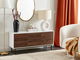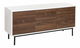 Vylepšete styl svého interiéru touto praktickou komodou. Díky kvalitní konstrukci z MDF materiálu s ocelovýma nohama je odolná a nenáročná na údržbu. Kombinace bílé barvy a barvy tmavého dřeva činí z této komody dokonalý doplněk do každého moderního či tradičního interiéru. Dvě skříňky s policemi a šuplíky nabízejí dostatek úložného prostoru a pomohou vám udržet pořádek v interiéru.