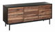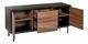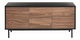 Vylepšete styl svého interiéru touto praktickou komodou. Díky kvalitní konstrukci z MDF materiálu s ocelovýma nohama je odolná a nenáročná na údržbu. Kombinace černé barvy a barvy tmavého dřeva činí z této komody dokonalý doplněk do každého moderního či tradičního interiéru. Dvě skříňky s policemi a šuplíky nabízejí dostatek úložného prostoru a pomohou vám udržet pořádek v interiéru.
